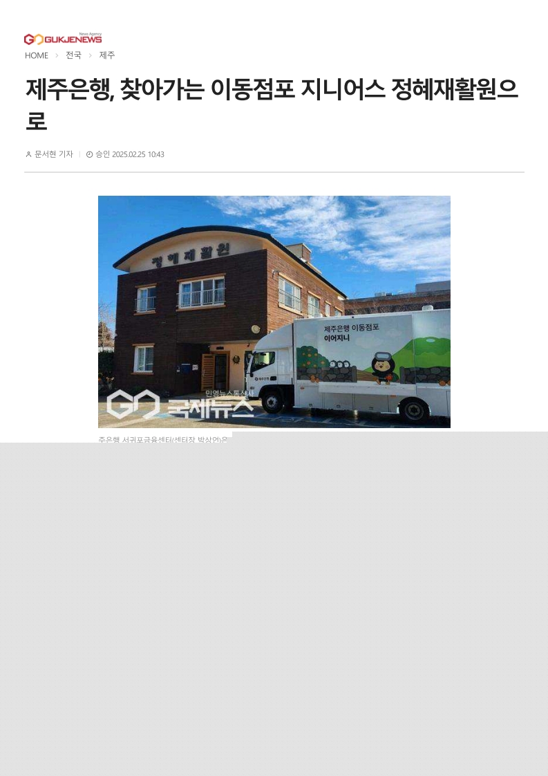 2025년 2월 보도자료(제주은행, 찾아가는 이동점포 지니어스 정혜재활원으로)_국제뉴스