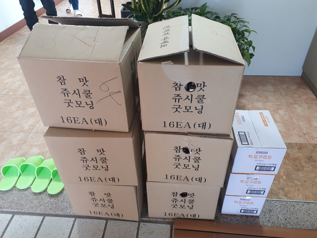 우유 6박스, 빅요구르트 3박스 음료후원
