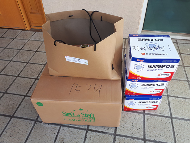 마스크 3박스, 수제마스크 85개, 손소독젤 15개 물품후원