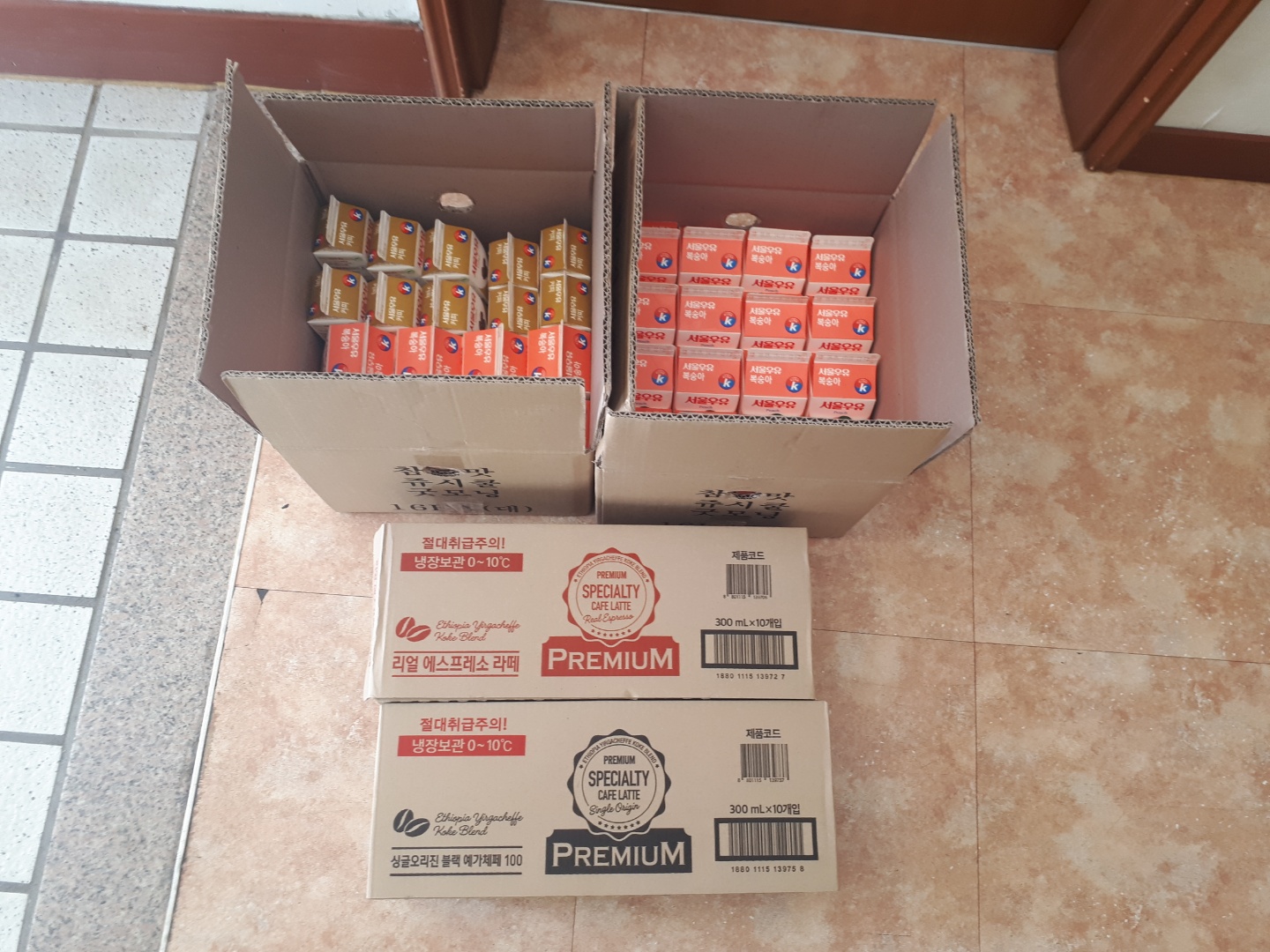 복숭아우유 56개, 커피우유 10개, 커피 2박스 음료후원