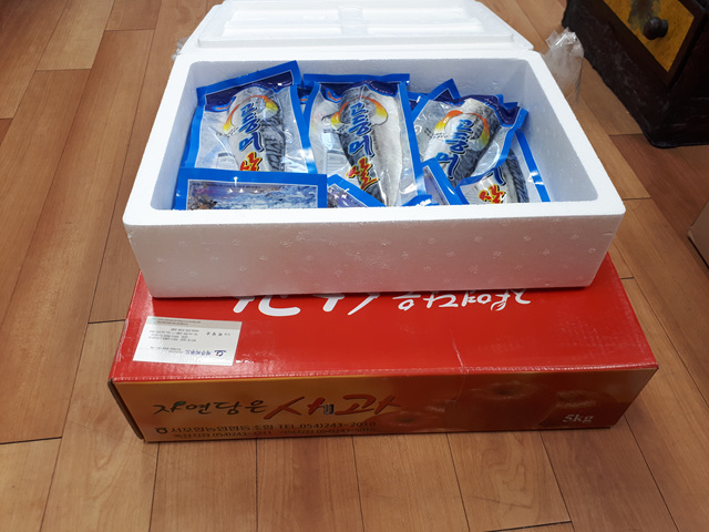 사과 1박스, 고등어 1박스 간식,부식후원